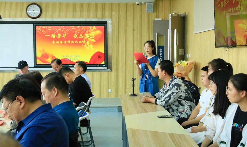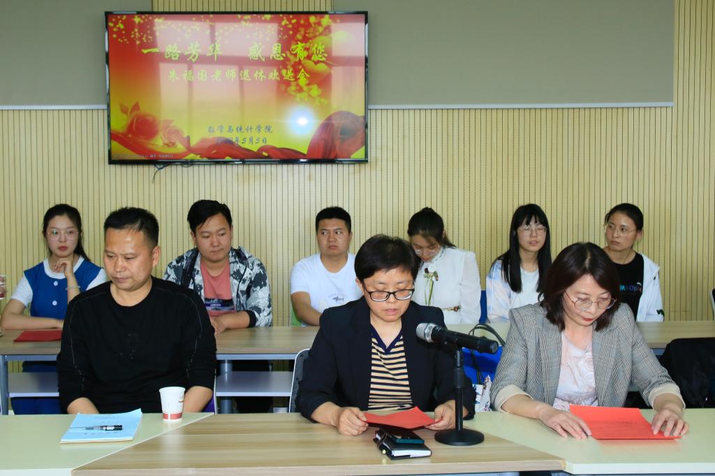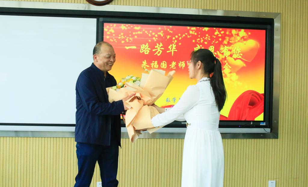 朱福国老师对学校和学院对自己的关心关爱表示感谢,并祝愿学校和学院发展更好、更快、更强。教师代表蔺海新副教授和学生代表丁月洁分别发言,对朱福国老师倾尽丹心育桃李,奉献韶华铸师魂的辛勤付出和谆谆教导表示感谢,同时表达了对朱福国老师的依依惜别与不舍之情。